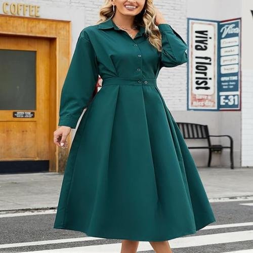 Ladyful Elegant Cotton Shirt Dress for Women A-line Long Sleeve Maxi Dress